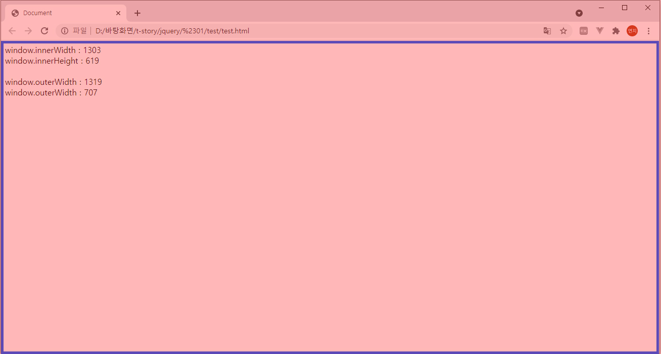 outerλ μλμ μ¬μ§μμ λΉ¨κ° λΆλΆμ΄ outerWidth μ outerHeight μ΄λ€.