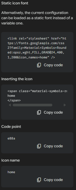 <link rel="stylesheet" href="https://fonts.googleapis.com/css2?family=Material+Symbols+Rounded:opsz,wght,FILL,GRAD@20..48,100..700,0..1,-50..200&icon_names=home,search,menu" />